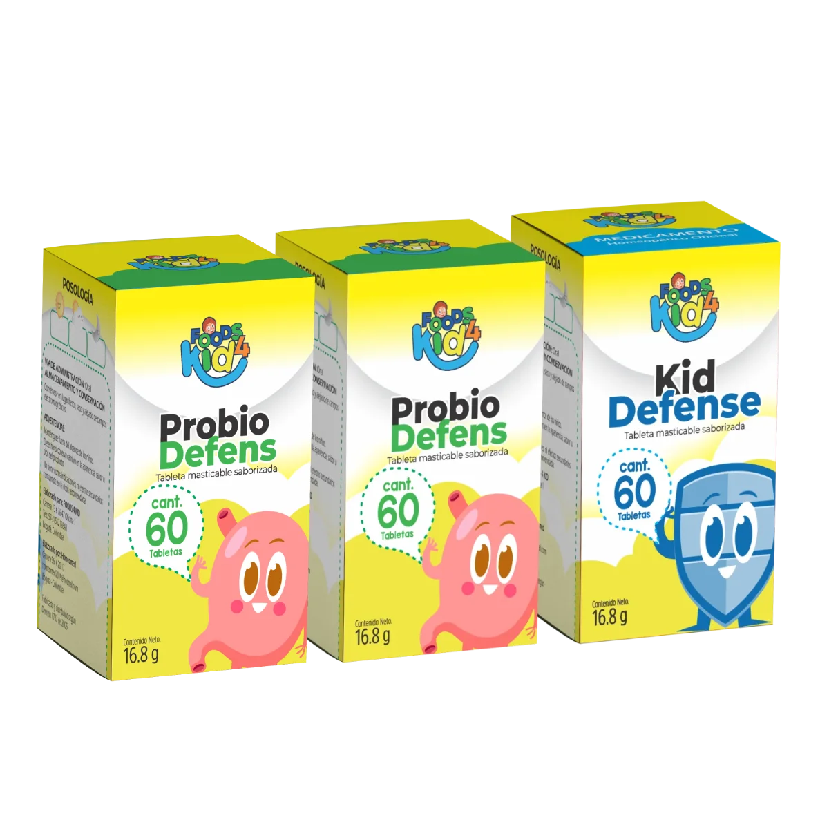 El pack de defensas está diseñado para fortalecer las defensas de tus hijos, actuando a nivel de sistema inmunológico innato y sobre la microbiota intestinal, formando un escudo de fortaleza para que no se enferme cada 8 días.